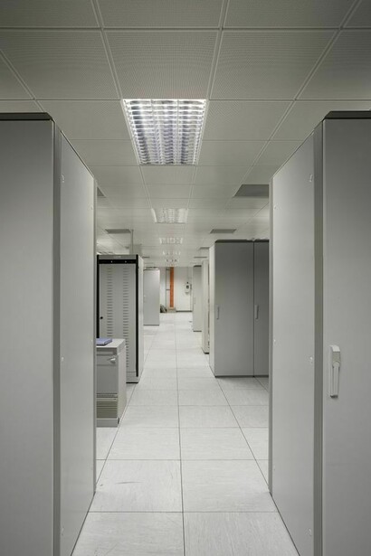 With the obvious correlations of symmetry and clean lines between the works in this series, I'm Interested in how everyone is either physically put into boxes (offices) or how servers and supercomputers hold information about the population. My work is shot very much from the non-judgmental stance of an observer.