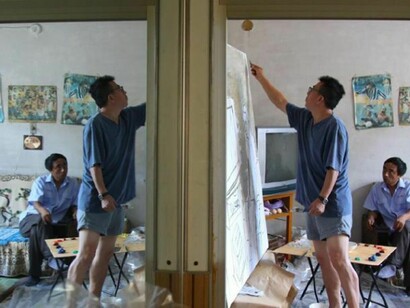 For his most recent major body of work, The Hotan Project (2012-13), exhibited at the Today Art Museum in Beijing earlier this year, Liu produced a quartet of monumental canvases and numerous over-painted photographs in and around the notorious opencast jade mines and the devastated landscapes of a remote area of China’s largest, westerly province of Xinjiang, close to Tajikistan, Pakistan and Afghanistan. His Hotan pictures capture a group of workers digging for increasingly rare jade deposits and highlight the ethnic and social tensions between the predominantly Muslim locals, the Uygur, and the ruling Han Chinese to whom the precious stones are generally sold to, either as carved objects or as an alternate form of currency. In the past, the artist has chronicled the realities of modern China, in depictions of villages destroyed in the construction of the Three Gorges Dam for Three Gorges: Displaced Population (2003-06), while Out of Beichuan, Into Taihu (2010) was painted amid the rubble of the Sichuan earthquake.