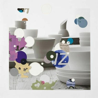 Seeing the pieces in person one is reminded of another era. Ferrandis’ collages are true descendants of the pioneering works by Kurt Schwitters a century ago. This is not just image-play within the picture plane; a tumultuous array of paper lifts above the embracing background in rich bas-relief. One is overwhelmed by the sculptural materiality of the works. So, are these images or objects? The tension between the three-dimensional world and our reception of it through sight is a recurring question throughout this series. That the text snippets reference, among others, the existentialist concerns of Søren Kierkegaard is not an accident.