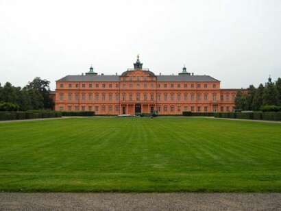 A meno di due chilometri dalla città, sulla sinistra, costeggio un stabilimento della Mercedes-Benz. Entro nel centro della città di Rastatt attraversando il ponte sul fiume Murg e visito il Rastatt Schloss, bellissimo e imponente castello barocco la cui progettazione fu affidata all’architetto italiano Domenico Egidio Rossi e fu concepito sulla impronta di quello di Versailles. Voluto dal sovrano Guglielmo di Baden Baden, detto Turk Louis per i suoi successi militari contro i turchi, il castello è veramente splendido, enorme e in ottimo stato di conservazione. Vale sicuramente la pena di essere visitato anche all'interno, ma adesso non ho proprio tempo. Esco dalla città, usando un sottopasso ferroviario, per riprendere il percorso in direzione di Ettlingen mangiando un'ottima Bretzel imburrata!