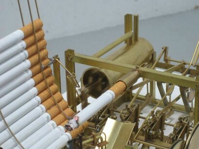 Der Ausstellungstitel „Hermetic Mechanics“ deutet auf den versteckten und unergründlichen Charakter hin, der alle Arbeiten Kristoffer Myskjas verbindet und unterstreicht darüber hinaus deren vollständig geschlossene Systeme, unabhängige Mechanismen, die menschliche Interaktion gänzlich ausschließen. Myskja erschafft also Maschinen, die paradoxerweise unnütz sind, wobei er ihre Raison d’être abwandelt, die unverzichtbare Hilfe für menschliches Handeln bietet.