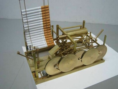 Die Kunst von Kristoffer Myskjas führt genau diese kritische Arbeit aus: All seine Maschinen und ihre Einzelteile wurden gänzlich von ihm selbst angefertigt, um uns an den zeitlosen Wert von Techne zu erinnern. Die Essenz der Maschine, daran sollten wir denken, ist die, das Individuum von der anstrengenden Pflicht zu befreien, Dinge zu tun; bei Myskja jedoch wird die Maschine zum Gegenteil dessen.