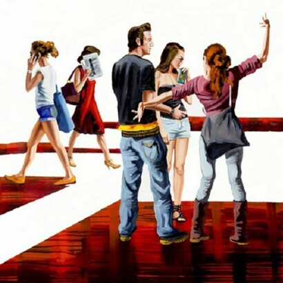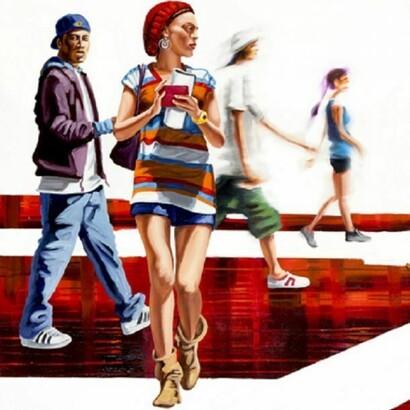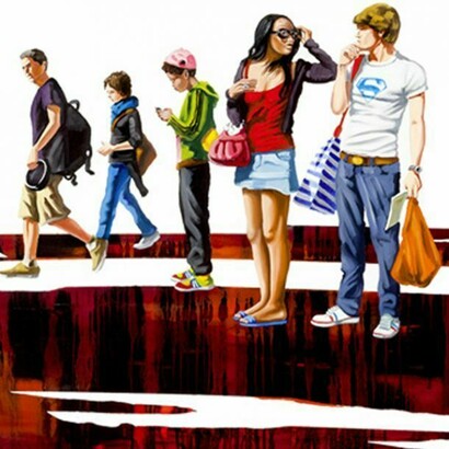 Es lässt sich erkennen, dass die abgebildeten Menschen aus Alltagssituationen städtischen Lebens herausgelöst sind. Einige stehen oder gehen eng zusammen, ohne miteinander zu kommunizieren und ohne einen Dialog zum Betrachter zu fordern. Sie versuchen anonym zu bleiben, indem sie ihre Gesichter verbergen. Ihre Körperhaltung verstärkt dieses Ansinnen. Es bildet sich keine äußerliche Barriere zwischen dem Betrachter und den Abgebildeten, dennoch macht es die beziehungslose Körperhaltung der Figuren unmöglich, sich in das Geschehene einzubringen und Bestandteil des Geschehens zu werden. Wir dürfen uns die "Generation Y" nur "von der Seite" anschauen und über sie urteilen.