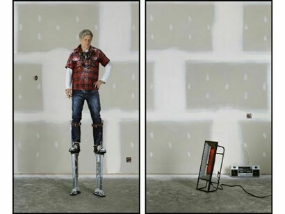 Eine weitere Zigarettenpause, die der Künstler in Vancouver beobachtete, inspirierte ihn zu seinem zweiten Werk der Serie, ‚Smoke Break 2 (Drywaller)’. Dieses Mal fiel Graham ein Trockenbauer ins Auge, der auf Stelzen vor einer Baustelle stand.
