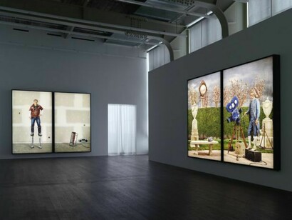 - 5. Rodney Graham, Smoke Break 2 (Drywaller), 2012, Painted aluminium lightboxes with transmounted chromogenic, transparencies; diptych, 304 x 364 x 17.8 cm / 119 5/8 x 143 1/4 x 7 in, © Rodney Graham, Courtesy the artist and Hauser & Wirth
