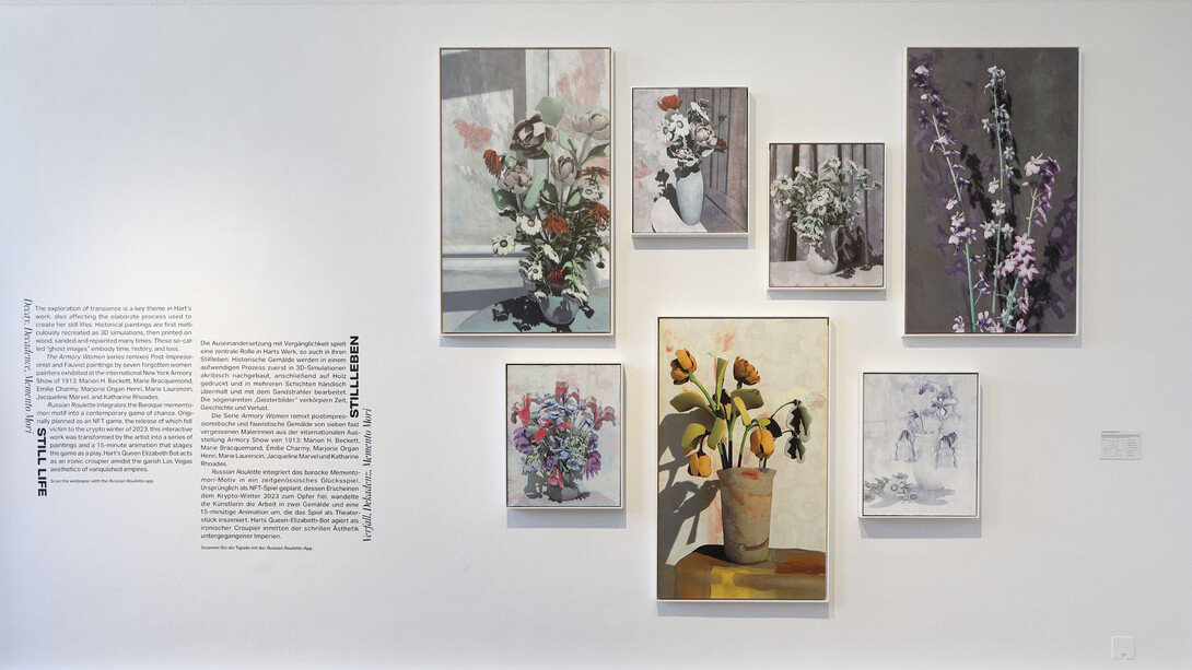 Immer wieder richtet sie den Blick auf gesellschaftlich Verdrängtes – etwa wenn sie vergessene Künstlerinnen des frühen 20. Jahrhunderts in neuen Ghost paintings würdigt oder klassische Stillleben digital zerfallen lässt, um die brüchigen Hierarchien des Kunstkanons offenzulegen.
