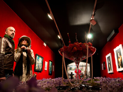 While keeping the charming style of its “First Circus,” the Gallery also discloses a touch of luxury while decorating its bookshop with the artists monographs in white velvet. It offers an exclusive display of limited edition prints and rare art toys, creating an exhibition hall which reminds the viewer of the settings in Tim Burton’s Alice. One of the Gallery’s core concepts is to propose high quality events based on specific themes involving literature, music and costume.