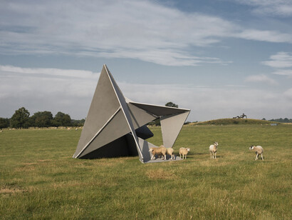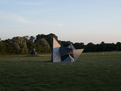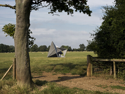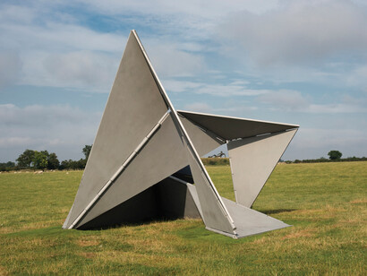 Impossible in her own lifetime, The Lygia Clark Estate in partnership with Alison Jacques Gallery, London was able to realize the first Fantastic Architecture sculpture in 2013. A year long process of working alongside Price & Myers and MTEC, both of who have been involved in large scale outdoor work by major British sculptors such as Richard Wilson and Anish Kapoor. The resulting Lygia Clark steel sculpture weighs around fifteen tons when installed, with hinges that allow for numerous configurations. Fantastic Architecture 1 is a living sculpture that evolves and changes depending on where the work is installed and who is installing it. At the Henry Moore Foundation in Perry Green, it provides a shelter for nearby sheep and resembles a huge creature in the landscape with seminal works by Moore including Large Reclining Figure (1984) and Sheep Place (1971-72), and Richard Deacon’s Associate (2014) in view nearby.
