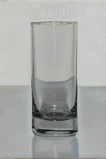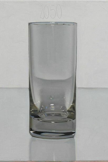 It would be the first in a long series (Tag um Tag ist guter Tag - Day by day good day), as from 1974 onwards Dreher painted that same glass over and over again, in the same conditions, in the same position and from the same perspective. He painted it and repainted it dozens of times every year, just as he continues to do today, forty years later, in the same medium of oil on canvas and true to its actual dimensions.