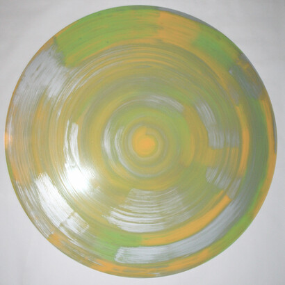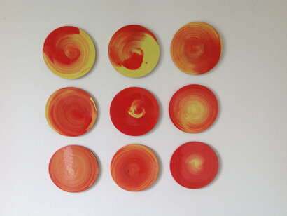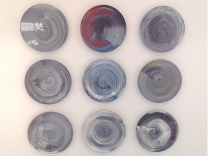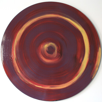 Their spiral forms are works that turn upon a single final brushstroke to complete their varied coils of colour. Operating around themes of rhythm and movement Melloy suggests that the hive is a perfect analogy for art-working. In order to remain vibrant and alive, all those involved, all those complicit in art must develop within the space of what can be called an artHive, where diversity and even incompatibility is necessary.