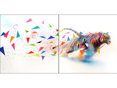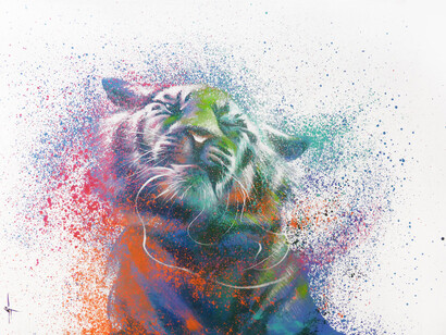 Some of these candy-colored figures are excessively inflated, and on the brink of exploding. Other pieces depict animals - whose natural patterning enables them to camouflage themselves in their environment - shown with synthetic rainbow-colored fur coats - symbolic of the plastic fantastic evolution into an artificially Kool-Aid infused world.