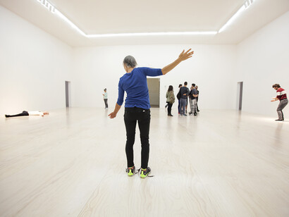 After an early career as a scientist with a doctorate in microbiology, Le Roy transitioned to dance and choreography. From the beginning, he approached his work like a researcher, focusing on the relationships between product and process and his own involvement in them. This methodology places him among a generation of artists who came of age in the 1990s. Influenced by conceptual art and institutional critique, they radically questioned the fundamental conditions of their own practices. Through solo works such as Self Unfinished (1998) and Product of Circumstances (1999) Le Roy opened new perspectives in the field of choreographic art while simultaneously drawing attention from the visual art world. More recently he has exhibited his work increasingly in an art context, including group exhibitions, On Line: Drawing Through the 20th Century at The Museum of Modern Art, New York (2011); Production, created with Mårten Spångberg for Move: Choreographing You, Hayward Gallery, London (2011); and Untitled for the exhibition 12 Rooms, co-curated by Hans Ulrich Obrist and Klaus Biesenbach, multiple locations (2012). Retrospective is his first solo exhibition in the United States.