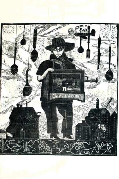 Today Ludmila Lunts has her own students and teaches her own course of watercolor painting. The present exhibition features a series of large-format linocuts. Most of them are dedicated to the artist’s teachers and masterminds, such as Salvador Dali, who was born on the same day as the artist.