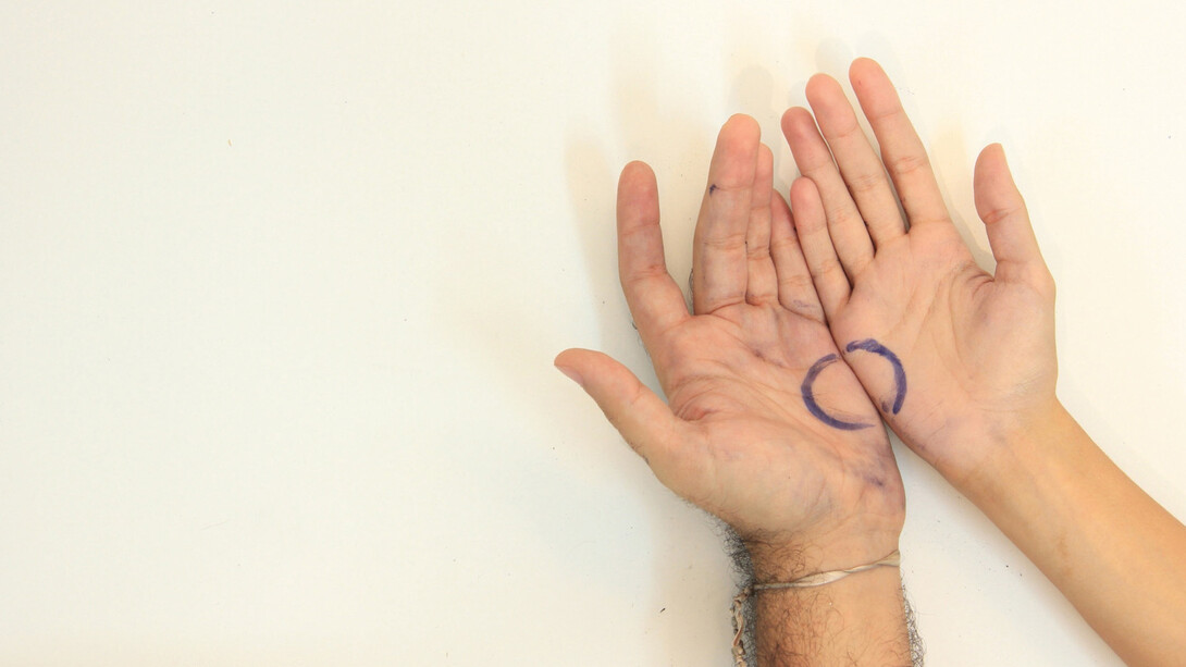 On the other hand, in another room of the exhibition, Lines (2011, in collaboration with Luciana Paiva) employs similar technical principles in the making of a simple allegory of the "anima" which the cartoon lends to the traces. The illusion that the succession of frames creates - that the static sketches are alive and moving - becomes almost palpable when are drawn in the hands of a man and a woman that meet, converge and depart in a miniature dance that could never end. Thus, repetition and invention are levelled up in a single plane, as if they never needed to have been designed separately.