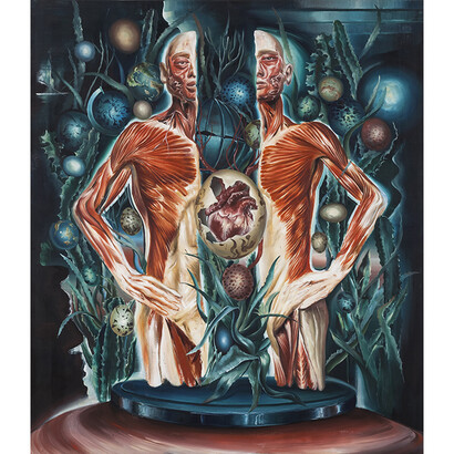 In rejecting the use of unconventional materials and the performative aspect of his oeuvre in his paintings, Ye Nan has returned to the seamless surfaces favored by Surrealists such as Salvador Dali and René Magritte without embracing their oneiric interests. While he was studying under the influential multi-media artist Qiu Zhijie in Hangzhou, he did not focus on oil painting but has now reached a stage in his development when he is prepared to investigate how this tradition-laden medium might be used for unconventional purposes.