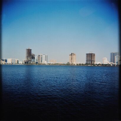 'Portrait of a territory' was created while on residency at the Sharjah Art Foundation in 2012 and documents the impact that man and the discovery of oil and its accompanying affluence has had on the landscape of the United Arab Emirates. In a systematic way Ziad Antar photographed the coastline of the different emirates, exploring the phenomenal boom in real estate development and man-altered landscapes.