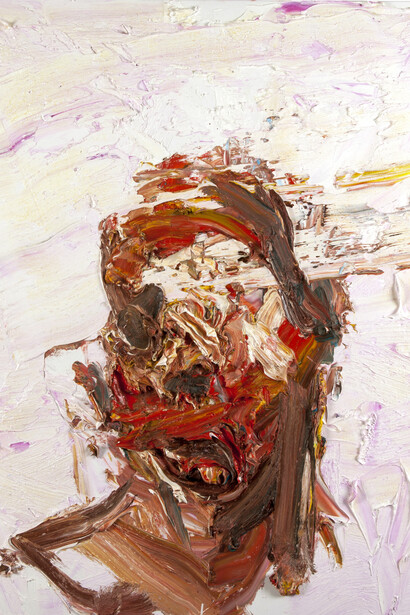Self makes a clean break in style and language from his earlier series Impure Idols (2007), Becoming Animal (2009) and Happy Deep Inside My Heart (2011). Stripping away the excess prevalent in this earlier work, Micallef has parted ways with the colourful pop language that dominated these previous series in exchange for a set of self-scrutinizing works that turns the looking glass upon himself and his medium. Having painted his own self portrait for the last 20 years, Micallef’s new body of work returns to something more visceral and honest, serving as a reflection of his personal journey as an artist.