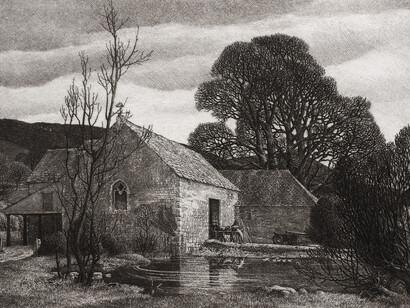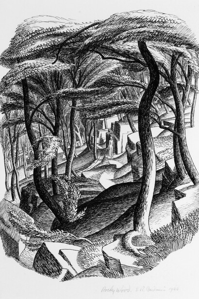 His precise yet poetic landscapes not only graced the walls of the Royal Society of Painters in Water-Colours but also illustrated such classic publications as Puffin Picture Books and the Shell Guides, and appeared in a range of formats from posters for transport companies to greetings cards for Royles. Together, his career takes the viewer on a journey across the British countryside, among trees and shrubs and into villages and towns.