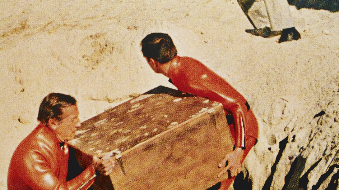 Bird #1, 1962, the earliest work in the exhibition, presents an image of a bird falling through the picture plane. Again, an early example of Baldessari’s use of cropping for dramatic effect, the bird has been cut in such a cinematic way as to suggest its falling through the air. Bird #1 belongs to a small group of paintings that escaped destruction, when on July 21 1970 Baldessari decided to ceremoniously cremate 125 works, including many oil paintings, made between 1953 and 1966.