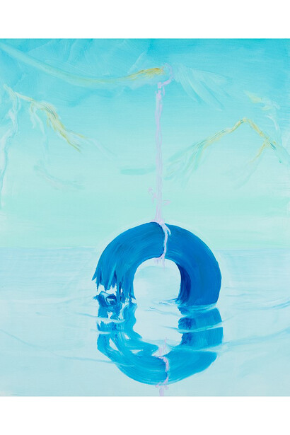 For O’Reilly, the act of painting itself is the result of an amalgamation of ideas, an ongoing intellectual process that sees him assimilate and process various images and ideas on canvas. Certain distinct visual cues are mined for their potential outcomes, finding themselves re-iterated throughout his canvases. The signature marks of O’Reilly’s strange, alternate universe – tires, hammocks, the great outdoors – slide and metamorphose from canvas to canvas, flipping expectations as they wander from one genre to another.