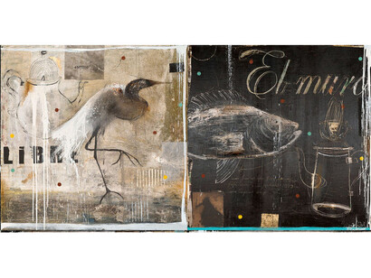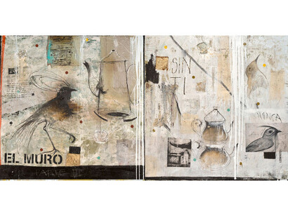 This exhibition aims to explore the concept of the wall: related to contemplation and reflection in an aesthetic sense. The wall then becomes a blank canvas, a public space to express a visual dialogue, not an object that imposes boundaries. Amador Montes ‘intervened’ each piece using different mixed media.