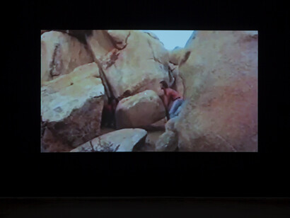Narrated by Lawrence Weiner and written by Bismuth and Aaron Schuster, Where is Rocky II? Teaser examines the dark historical chronology of Joshua Tree (the site where the Ruscha work is supposedly hidden) from 1870 to 1976. Detailing a series of legendary disappearances, deaths, fakes, supernatural encounters and cinematic illusions, Teaser situates Ruscha’s object firmly in the mythology of the landscape. Weiner’s participation serves a bifold purpose – the sonorous familiarity of his voice is not only a reference to the traditional cinematic teasers that well known Hollywood figures lend their voices to, but it likewise creates an improbable bridge between conceptual art and the entertainment industry.