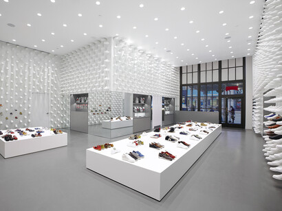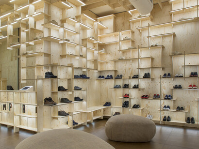 Taking visitors from the design studios in Mallorca to high-tech mass production facilities in the Far East, and on to shop floors across the globe, the exhibition includes: exclusive behind-the-scenes material from the development of the SS15 and AW15 collections; recreations of retail spaces designed by Marti Guixé, Nendo, Jaimie Hayon, Tomas Alonso, Bouroullec Brothers, Campana Bothers, Tokujin Yoshioka, Kengo Kuma, Shigeru Ban, Fernando Amat and Doshi Levien; shoe collaborations by Hella Jongerius, Jasper Morrison, Bernhard Willhelm and Gosha Rubchinskiy; interviews with company founder Lorenzo Fluxà and Creative Director Romain Kremer; as well as previously unseen material from the company’s extensive archives.
