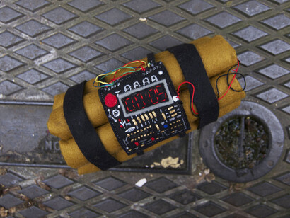 Visitors walking into The Warmongery will be entering an armoury where the walls are lined with an arsenal of felt guns, knives, pistols and explosives. Purchasers of weapons will receive a felt firearm licence while behind the counter there will be a range of biological and chemical weapons, dispensed from sweetshop jars. Shop assistants in full biohazard suits will be checking visitors to The Warmongery for traces of radiation and bacteria while the more discerning arms shopper will be able to discuss a range of bespoke felt nuclear devices with the artist.