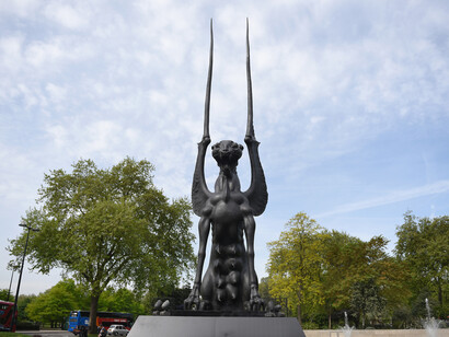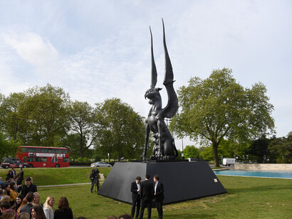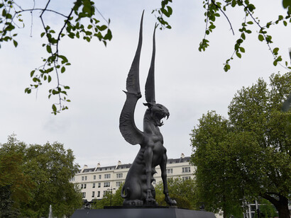 The spectacular bronze statue rises 11 metres from claw to wing tip, and depicts a female feline protecting her young. She Guardian will be placed next to Cumberland Gate, Marble Arch, against a backdrop of green parkland and urban architecture.