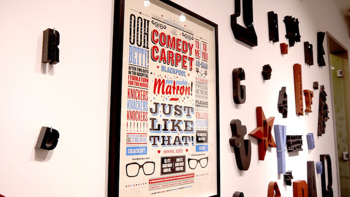 This exhibition gives you the opportunity to own one of these unique covetable fragments, which were produced to create the largest and funniest typographic monument in the world. Exhibited alongside the letter fragments will be film footage, a documentary book, photographs and a screenprint edition produced in the Jealous Print Studio 'Comedy Carpet Off-Cuts' gives a behind the scenes insight into this huge and ambitious project.