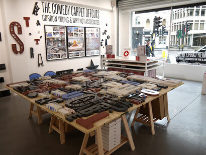 Jealous Gallery is pleased to announce the first exhibition of the Comedy Carpet Off Cuts. Adorning the walls of the gallery will be the remains from the production of Europe's largest piece of public artwork. The gallery will be showing a selection of the letters and characters used to make the work, along with other documentation of the works conception and creation.