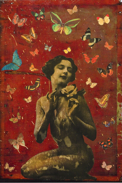 Blanchard explains, “My art is full of my influences, it’s a language that is personal to me.” As a non-conformist artist, his signature has become a meddling of images and assemblages. Combining surrealism with pop culture, Blanchard’s nudes are suspended in canvases adorned with butterflies, a recurring motif that appears in Blanchard’s work.