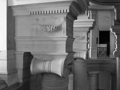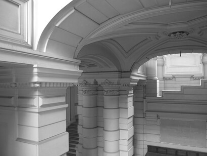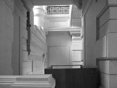 With his architectural intervention, Rebetez alters the physical nature of the space and activates it, creating a new environment for the viewer to inhabit. Working with the columns and architecture of the gallery, Rebetez’s photographs will be projected from within the walls into the gallery space. Images show details of neoclassical structures - columns, beams, pillars and arches - drawing the viewer from the urban context of the modern pillar, from which the projections stem, into a magnificent architectural past.