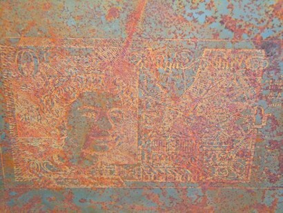 For this project the artist is using etching and foil blocking plates incorporating them into the works in an unorthodox way. Acrylic paint is used completely autonomously of any technical manipulation other than the initial marriage. The interaction of these mediums and their impact on each other represent the acceptance of authority with our conformity and dependence of it.