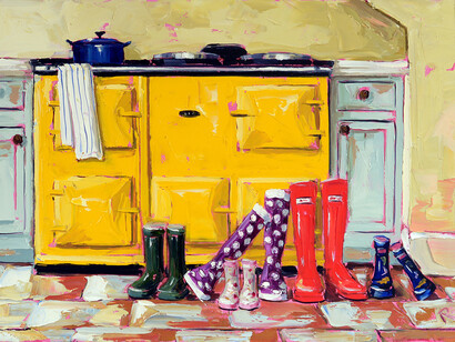 Róisin is best known for her paintings of colourful welly boots. The paintings came from her own family experience as a mother. “I love their relaxed, untidiness” she says “and of course, they can be seen as a kind of family portrait.”
