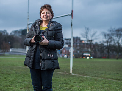 Urban and rural landscapes complement portraiture to give a comprehensive visual record of the preparation for the Rugby World Cup in Exeter. The photographs of signage, organisers, players, spectators and fans reflect the diversity of interest and importance of Rugby in Exeter’s communities.