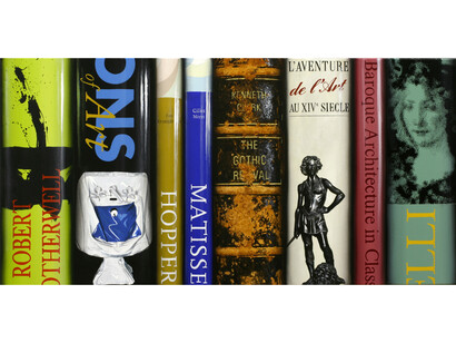 The title of these works, “Vanitas” refers to the idea of books being endangered within our contemporary culture. Beliveau provocatively explores this subject by creating works that house a co-existence between classical and pop culture, through knowledge and reference. In classic paintings, “vanitas” is about the brevity and ephemeral nature of life, represented by hourglasses, skulls or rotten fruits. Paintings in vanitas style were meant to remind viewers of the transience of life, the futility of pleasure and the certainty of death, by composing images of book spines Beliveau’s paintings are full of references to culture, iconography from the past and present, and so they are used by the artist as a strategy against loss. The worn books metaphorically evoke the passage of time and reveal one’s finiteness; therefore it triggers thinking about the longevity of culture. In this sense, the books are “vanitas” because they have a terminal nature in our contemporary culture. Yet, through construction, reorganizing, photographing and painting books, the process of recreation and reinvention, the exploration of what’s embodied and the spiritual which underpin the construction, have prolonged the life and value of these books in our digital world.