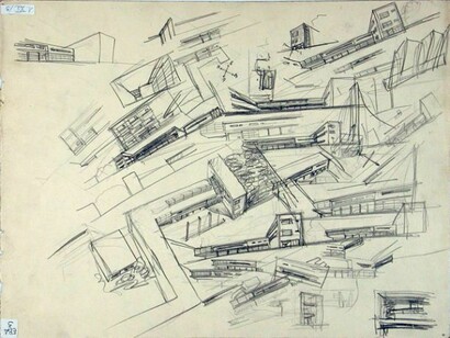 At the heart of the exhibition, which is curated by Pierre-Alain Croset, are over 160 sketches and original drawings, which illustrate the evolution of Cattaneo’s architectural thinking – an approach to architecture which is characterised by a powerful tension between ideas. Here the act of drawing becomes, to all intents and purposes, a form of writing, in the sense that it is the graphic transcription of an idea: many of his sketches reveal the intensity and quickness of a design process that generated variations, changes of mind and sometimes-radical alternatives. This analogy between drawing and writing forms what is effectively a leitmotiv for the exhibition, evident both in the selection of the material to be exhibited and in the design of the exhibition’s layout. In fact the exhibition layout suggests two different levels of reading, clearly separating the original material, which is exhibited on the tables and in the display cases, from the printed material which is displayed on the walls of the exhibition space, and which includes texts, quotes, photographs, films and photographic enlargements representing architectural details. The drawings, which are either single or grouped by series, are accompanied by brief explanatory texts to help visitors decipher their specific meaning. In turn, the prints displayed on the walls form a “visual narrative” connecting the drawings, the critical texts, the recurring stylistic themes to be found in many of Cattaneo’s projects, fragments of individual drawings and examples of details from his built work.