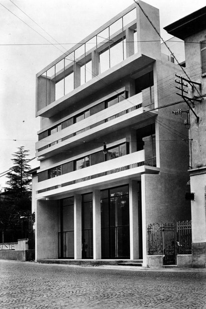 A leading member of Como’s second generation of rationalists and a friend and colleague of Giuseppe Terragni and Pietro Lingeri, Cesare Cattaneo is notable for his remarkable experiments with plasticity and for the detailed theoretical research that he applied with great constructive and functional coherence. Graduating in architecture from the Politecnico di Milano, and already having acquired practical experience in the sector, in 1935 Cattaneo began work as an independent professional architect, constantly in touch with the leading exponents of the rationalist movement in Lombardy as well as with the group of abstract artists who were based in Como, in particular Manlio Rho and Mario Radice. Covering a period of only eight years, in a time of political and economic upheaval, his intense professional career included the realisation of astonishing “episodes of expressivity” such as the Giuseppe Garbagnati Infant School in Asnago (1935-1937) with Luigi Origoni, the Camerlata Fountain (1935-1936) with Mario Radice, the house at Cernobbio (1938-1939) – which has been defined the “masterpiece of polydimensional abstraction”, and the headquarters of the Unione Lavoratori dell’Industria in Como (with Pietro Lingeri and Luigi Origoni, 1938-1942), which Kenneth Frampton has described as “the most brilliant solution to the themes of composition and typology addressed by the rationalists of Como, so much so that one might even maintain that it represents one of the principle source of inspiration for the so-called autonomous architecture (that was a product of the) ‘Italian school’.” Cattaneo’s premature death on 24th August 1943, at only 31 years of age, interrupted his ongoing work on numerous projects and designs. Expressed with great clarity in the essay Giovanni e Giuseppe. Dialoghi di architettura (Milan, 1941), his poetics are of particular theoretical importance thanks to the innovative concept of “polydimensionality” which marks him out in the panorama of the rationalist architecture of the period.
