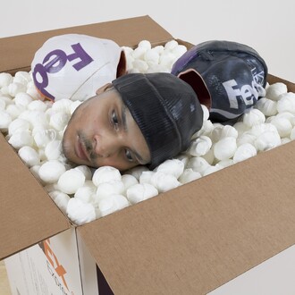 A new video draws on the hand gestures taught to Dominos employees competing to perfect their pizza making techniques, with the artist herself enacting the moves. In a series of new sculptural works Egan uses tactile materials to highlight the qualities of takeaway meals and their residues. And inspired by the ‘frankenfood’ phenomena, where fast food giants compete in a saturated market to create the most outlandish meals imaginable, Egan evokes the endless tubular sausage form of a hot dog stuffed crust pizza, cast in pink rubber, which loops and knots around the unique architecture of the gallery space.