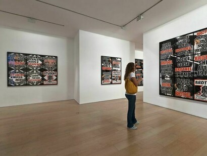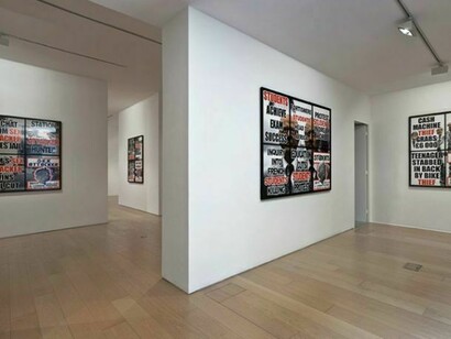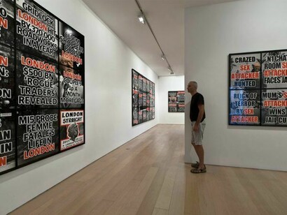 «London Pictures», is a monumental body of work comprised of 292 works that let the city speak for itself, based on the 3712 newspaper- sellers’ posters, that the artists have been stealing over the last six years and then classified by subject. The series reveal the nervous system of everyday modern society: impulses, sorrows, hopes, temper and desires of everyday urban life. Behind every poster is the truth and realism of inviolable human condition, the effects and consequences. This is the truth which Gilbert & George have described as a "moral dimension" which determines their art.