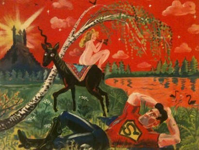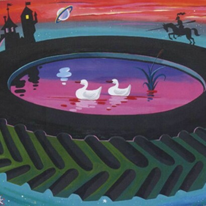 His kitsch imagery is both reminiscent of popular culture and the ground of resistance, criticism and subversion. His work claims to be a totalizing image and is composed of heavy lines and decorative elements. In its over two-dimentionality the space is flattened and the work heavily references Cubism and Surrealism, the two most popular trends in Czech art.