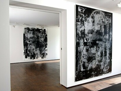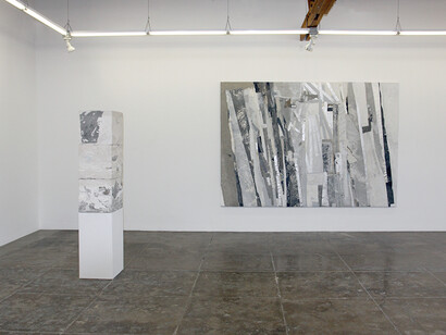 The artists included in “Process” encompass a diverse miscellany of practice. Marrying digital manipulation with traditional stenciling, spraying, rolling, brushing, and printing, John Bauer revisits the intimacy of Abstract Expressionist mark-making from a mediated postmodern distance. Chris Duncan works in a state of flux between maximal and minimal extremes, using repetition and accumulation as a basis for experiments in visual and sound based media. Kara Joslyn teases out the delicate quality of her forms using polymer auto paint applied with a laborious process of masking and airbrushing, calling up tensions between the hand-made and the industrial. The paintings of Lester Monzon gently lampoon the notion of a fixed context by collapsing architecture, space, and art history into a tête-à-tête between rigid grids and gestural marks. Julie Oppermann uses flickering, juxtaposed imagery to push the limits of visual perception, creating paintings that are physically difficult to perceive. By satirically dissecting and re-appropriating medium and meaning, Kim Rugg highlights the innately slanted nature of information distribution. Christopher Russell disturbs settled surfaces with scratches and haze, evincing the kinds of outlier memories that plague our psyche well after childhood. By mining the peripheries for discarded objects Heidi Schwegler creates bodies of work that inhabit an equilibrium between endurance and decay. Meghan Smythe weaves glass, ceramic, and concrete together in an orgiastic web of body parts and biological artifacts, monumentalizing our mortality in unanticipated ways. Ryan Wallace forges new abstractions from the detritus of previous works, generating a marriage between cognitive and intuitive ways of thinking.