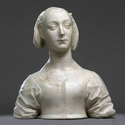 Thus, arranged around the city’s absolute symbol – the wooden model of Brunelleschi’s Cupola for Santa Maria del Fiore – the exhibition offers a retrospective of themes and types of sculpture that were also to have a crucial impact on the development of the other figurative arts, in a direct debate with their classical predecessors, from the tombs of the Humanists, to the inspiration provided by ancient sarcophagi, to the rebirth of the equestrian monument and the carved portrait. The carved portrait, which became popular towards the middle of the century – in the marble busts of Mino da Fiesole, Desiderio da Settignano, Antonio Rossellino and Verrocchio – heralds the transition from the fiorentina libertas, represented by public patrons, to the private patronage that already bore the mark of the Medici family’s impending hegemony. This transition is effectively captured in the culmination at the end of the exhibition with the Wooden Model of Palazzo Strozzi, the most illustrious private residence of the Renaissance.