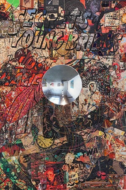 Hundley is a reactionary artist with a fine-tuned and specific index of goods from which he plies his trade. A thickly rendered, painted surface may be built upon a foundation of worn, stacked materials, and a smooth area may be made of countless layers of rubbed and fanned out paint. He cuts angular crevices into works to starkly contrast the flatness of two-dimensional surfaces. Through vast fields of printed paper and pinned photographs he delicately carves intricate channels, embroidered with a full spectrum of colorful thread and held by thousands of gold pins. The works are constructed in a way that is completely controlled but freely conceived. It is with strict intentionality and equality between painting, collage, photography, sculpture and hybrids of each that the work can be authentic and automatic.
