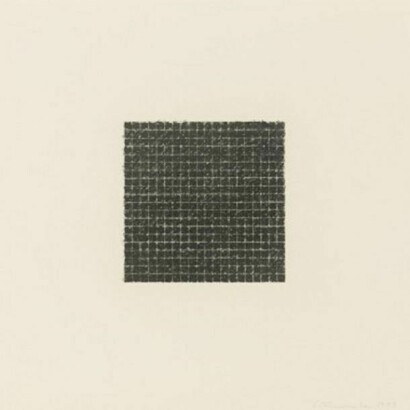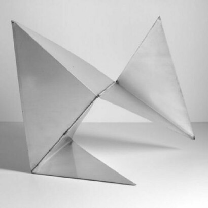 Considered pioneers of the re-engagement of non-objective art, Josef Albers (1888-1976), Lygia Clark (1920-1988), and Hélio Oiticica (1937-1980) are represented by signature works. Albers’s Interlinear N 32 bl (1962) exemplifies his use of mechanical means to create a complex spatial illusion by engraving an impersonal, functional line within a field of hand-rolled jet black ink. Oiticica’s gouache Metaesquema 286 (1958) shows the effective use of simple, monochromatic shapes to create an active, open composition where the forms appear to pulsate across the plane, expanding the field in a rhythmic pattern that infers space beyond the paper’s borders. Clark’s Bicho (1960), made of folded aluminum, is from her well-known series that plays with notions of angled planes, active space, and the possibility of variable compositions and multiple vantage points contained within a single work.