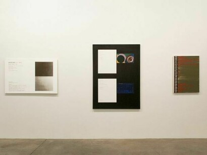 The show will have selections from 1991 to the present. Double Rejection, 2012, documents a moment when his painting hung in the boardroom at MoMA. The newest work Spine 1, 2013, is based on the abraded spine of the catalog of Barnett Newman’s Stations of the Cross, which has been in Diao’s possession since its publication in 1966. He will also present some very small copies of several of his favorite geometric paintings from the 70s in the manner of Duchamp’s Boite-en-valise.