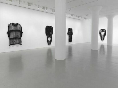 Gone tomorrow presents an evolution of specific terms within Ross-Ho’s personal language. Translations of textiles, jewelry, and found images that have featured prominently in her work now loop back in transmuted forms. Gone tomorrow continues to scramble and hybridize the genetic code that forms her work.