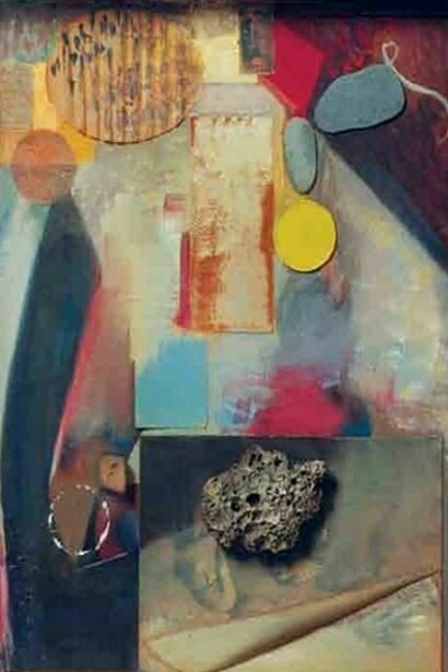 Schwitters’s escape from Germany took him first to Norway, where he boarded the last ship to leave the country before Nazi occupation. On arrival at the Scottish port of Leith, he was detained as an enemy alien. He was one of many German exiles, including a significant number of artists, who were interned on the Isle of Man during World War Two. In the camp he participated in group exhibitions and gave poetry performances. On release in 1941 he became involved with the London art scene, engaging with British artists and critics such as Ben Nicholson and Herbert Read. The latter described him as ‘the supreme master of the collage’.