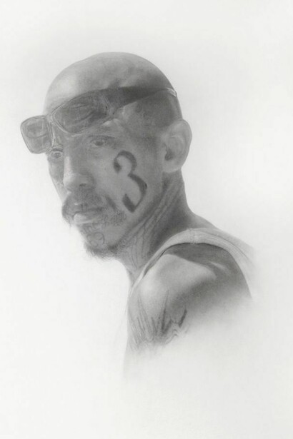 The subjects portrayed in Patrick Lee’s graphite drawings are threatening and aggressive in appearance. The artist approaches these men on the streets of Southern California and photographs them as studies for his drawings. This dialogue and interaction is an essential part of his process.
